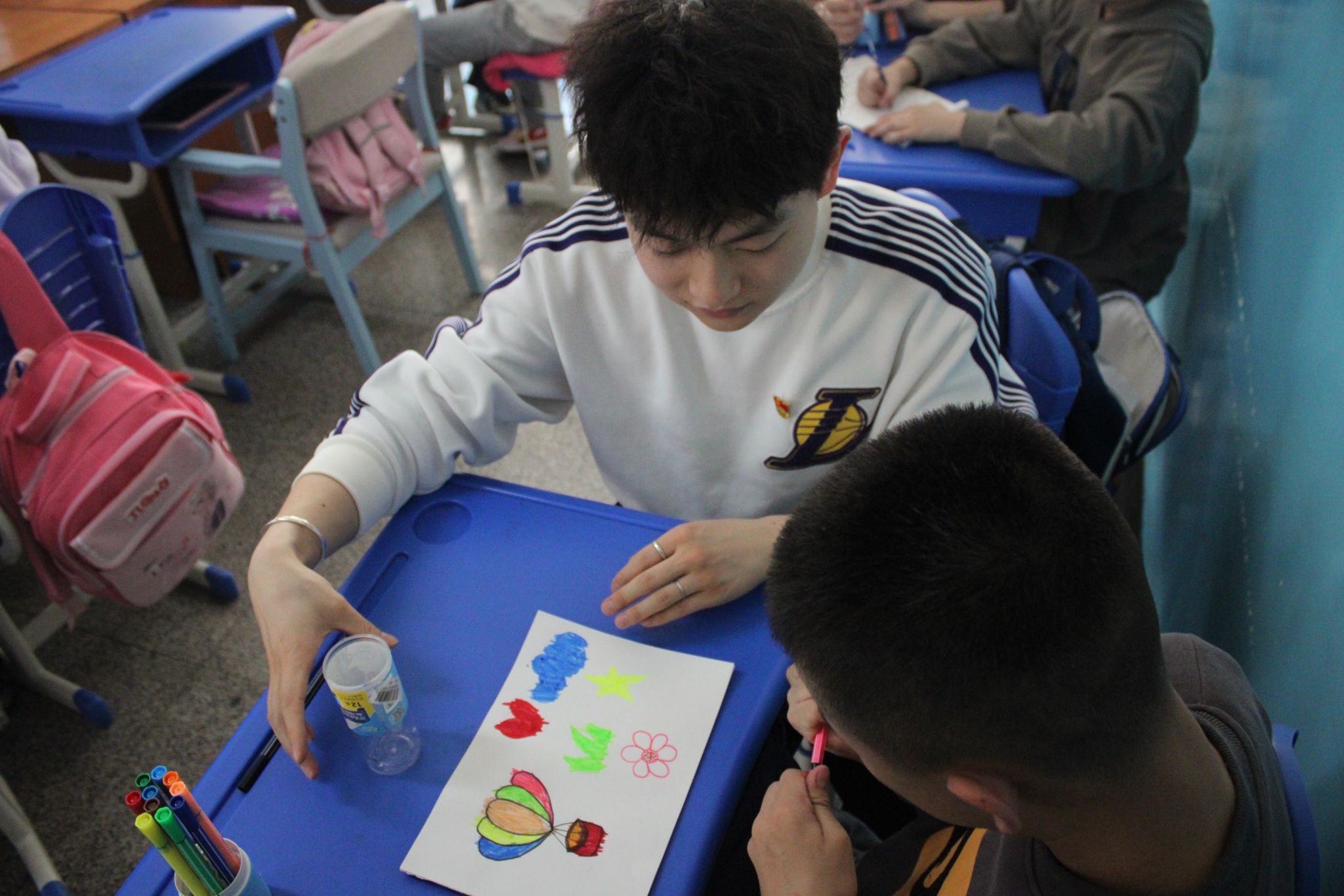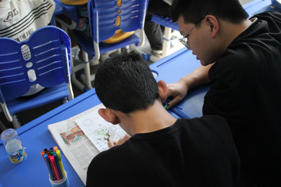 大学生带小朋友做游戏