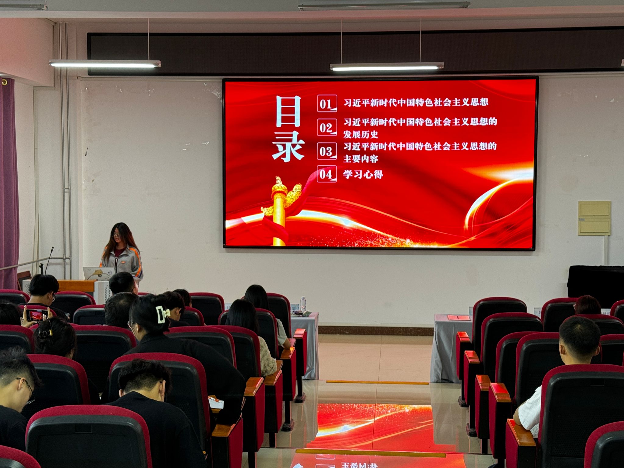 学生第四党支部于明德楼B401组织开展“铸牢中华民族共同体意识”主题学习,旨在深化学生对中华民族共同体意识的理解和认同,进一步促进民族团结进步,增强民族认同感和自豪感。