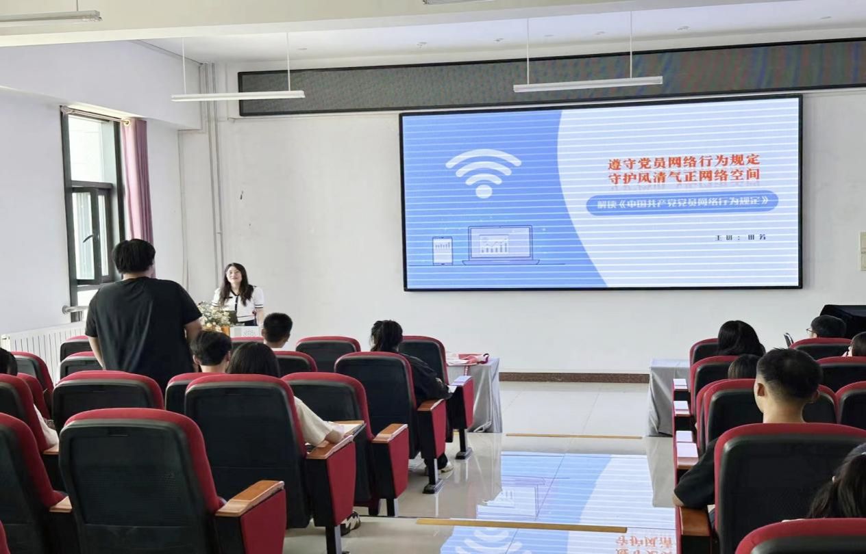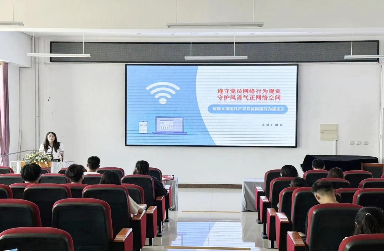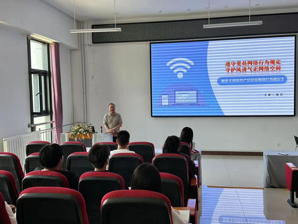 在明德楼B401进行解读《中国共产党党员网络行为规定》党课培训,本次培训主讲人是校党委宣传部副部长田芳,培训由学院党委委员、副院长李志春主持。
