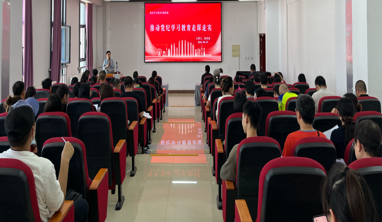 抖阴 进行党纪学习教育专题党课 为深入推动党纪学习教育,抖阴 于2024年6月27日14:30分在明德楼B401进行“推动党纪学习教育走深走实”主题党课,全院教职工参加学习、学生党员代表参加学习,本次党课的主讲人是学院党委副书记包青虎。 党课围绕以党纪学习教育推动广大党员、干部强化遵守纪律的自觉展开,课程强调,要使铁的纪律成为日常习惯和自觉遵循,学习要融入日常、学用结合,立足教育教学促进党纪学习教育实效。教师应更加深刻的理解和把握党的纪律要求,以高质量教育教学促进学校教育发展新成效。