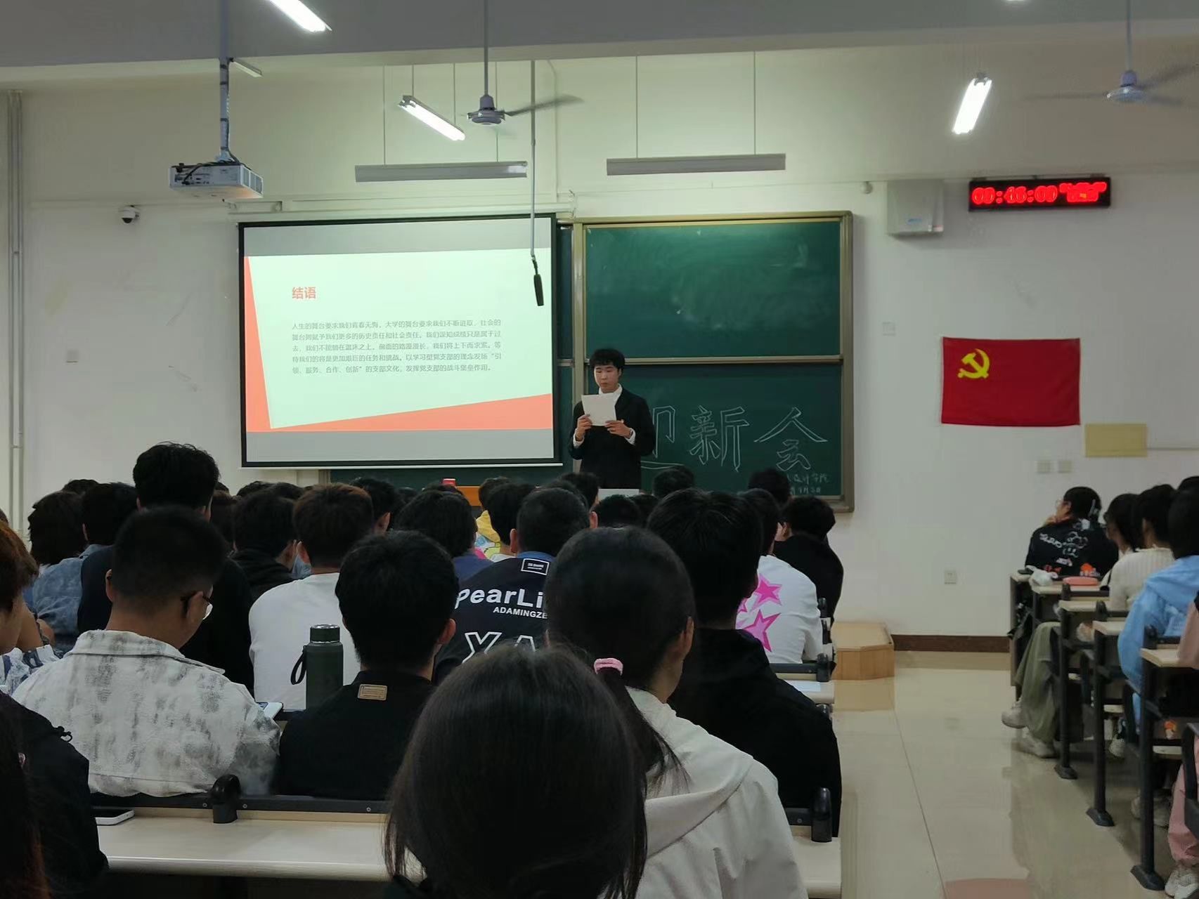 通过这次接待会,新生们不仅学习了入党的基本流程和条件,对党组织有了较为全面的认识。他们纷纷表示,要努力学习、积极进步,不断提升自己的思想政治素质和综合能力水平;同时,也要积极向党组织靠拢,争取早日成为一名光荣的共产党员。最后,新生集中观看了《老师,您好!》节目。