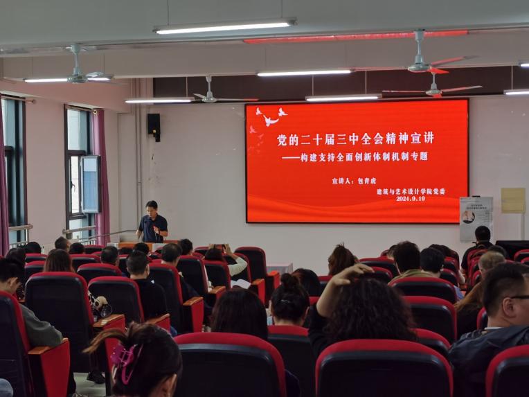 在明德楼B401召开全院教职工大会,进行“党的二十届三中全会精神——构建支持全面创新体制机制”专题学习。会议由学院党委副书记包青虎主持,学院全体教职工参加学习。