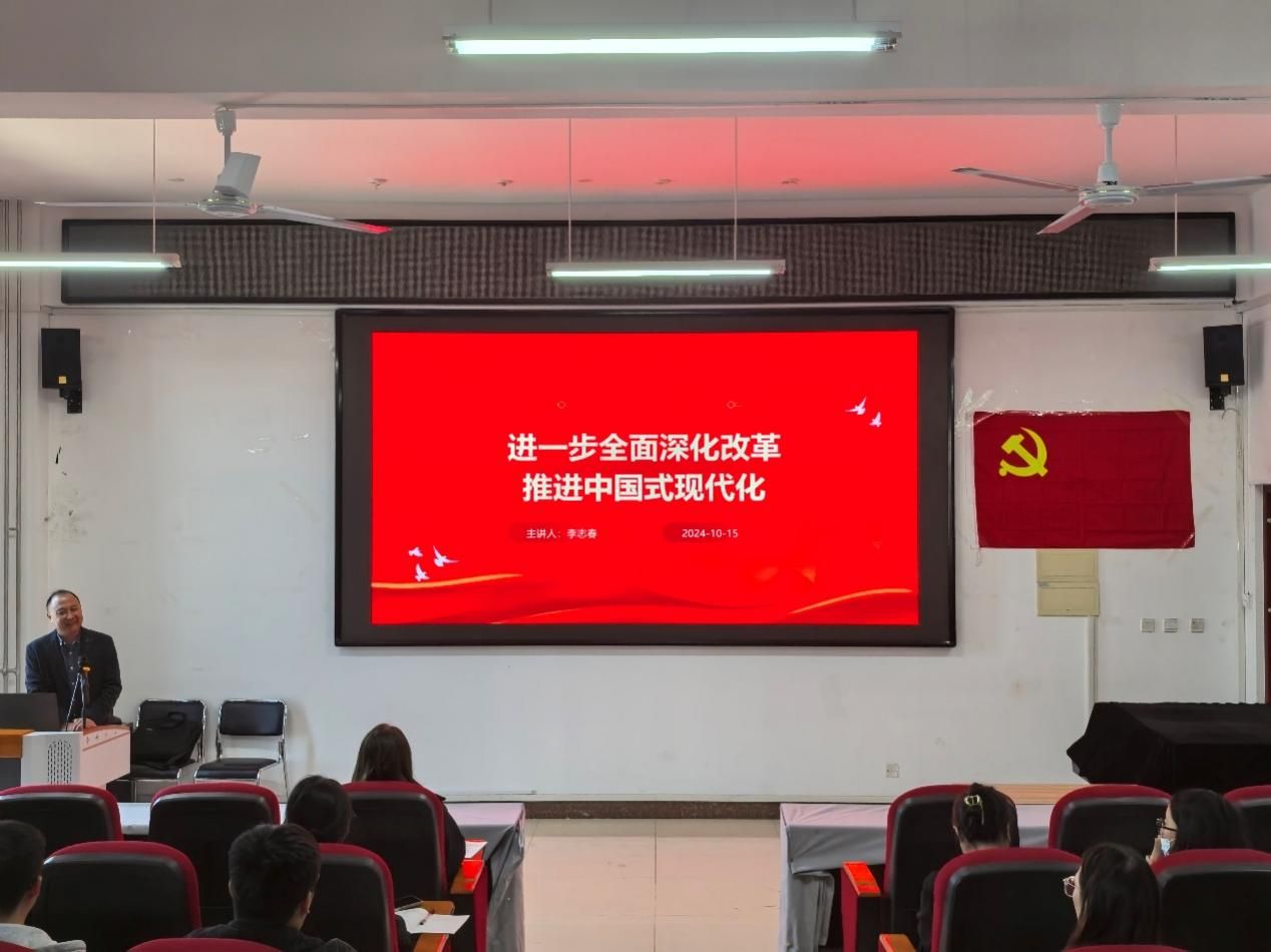 在明德楼b401开展了 “进一步全面深化改革,推进中国式现代化” 主题党课培训,由副院长李志春主持。