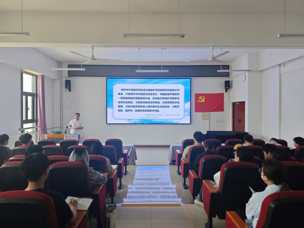党委于2025年5月12日中午12:30在明德楼B401进行了“铸牢中华民族共同体意识”入党积极分子党课培训,本次党课的主讲人是学院辅导员朱国富。