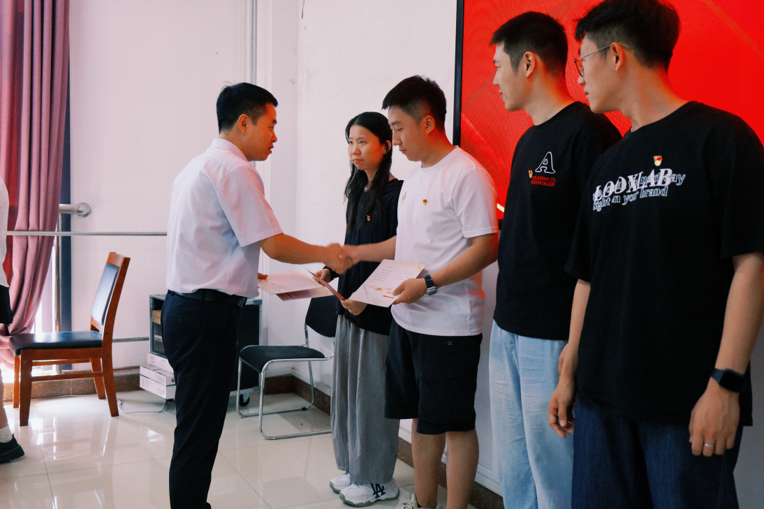 会议第四项,由包书记、吴书记为毕业生党员发放生日贺卡,叮嘱毕业生要铭记“入党一生一次,入党一生一世”,要持续提高党性修养,用实际行动践行对党的庄严承诺,为党和人民事业的发展贡献力量。
