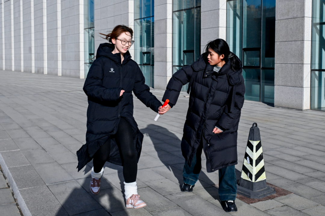 “一二!一二!”在同心击鼓项目现场,呐喊声与鼓点声交织回荡,展现了同学们团结协作的能力。50米接力赛道上,气氛紧张而热烈。随着哨声响起,首棒队员如离弦之箭冲出起点,奋力奔跑、快速交接,后续队员无缝衔接,在赛道上展开速度与激情的较量。千里传珠项目中,队员们分工明确,有的调整管道角度,有的快速衔接管道,有的紧盯球体实时提醒,在小心翼翼地配合中稳步推进。