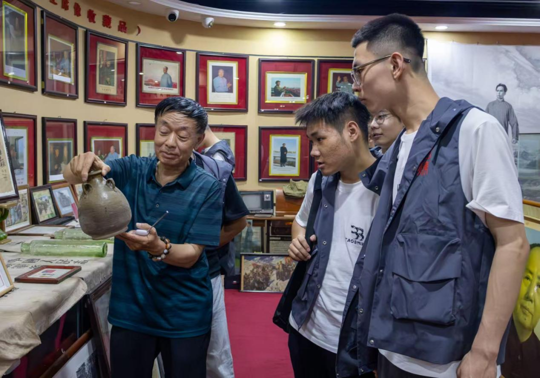 首站来到固阳县红色文化博物馆,馆中的革命藏品,既有见证西口文化迁徙的老物件,也有记录黄河岸边军民抗战的史料。在馆长姚建国的讲解中,同学们从“黄河岸边的奋斗史”中读懂固阳作为黄河“几字弯”文化节点的厚重底蕴。