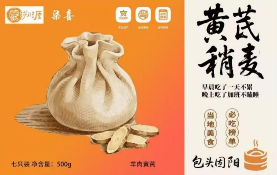 作为黄河“几字弯”流域的特色药材,固阳黄芪因昼夜温差大、沙壤土富微量元素的天然优势,拥有“双重地理标志认证”和“仿野生生长”的稀缺品质。2023年黄芪纳入国家“药食同源”目录后,当地开发的黄芪稍麦成为连接药材与民生的新载体,但存在包装简陋、文化符号缺失等问题。