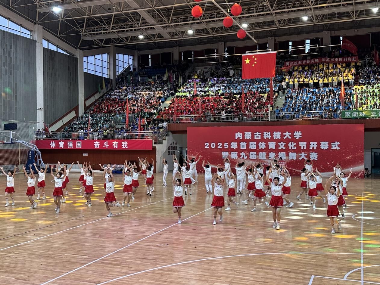 2025年首届体育文化节开幕式暨第九届健美操舞大赛在内蒙古科技大学体育馆火热开赛。抖阴