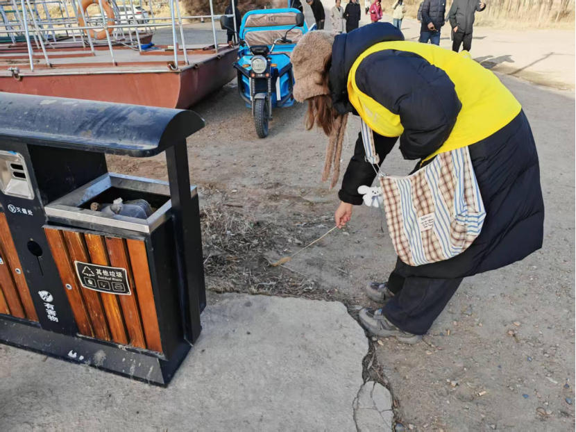 写生结束后,同学们开始清理沿岸垃圾、宣传保护知识,守护黄河生态,传承母亲河文明,以志愿之力绘就生态保护与文化传承的青春答卷。以志愿之行护黄河碧波,传千年河脉,为流域生态修复与文化传播注入温暖动能。