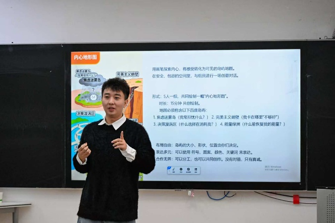活动中,通过情绪解码、互动击掌、地图创作、感官体验及行动清单撰写等环节,同学们逐步卸下“必须摆脱负面情绪”的心理负担,学会将抽象焦虑转化为可视化表达,掌握了通过专注当下锚定情绪的实用方法,更明确了将“难启动的改变”拆解为小事的行动方向,在轻松互动中收获了心理赋能,有效缓解了内耗困扰。