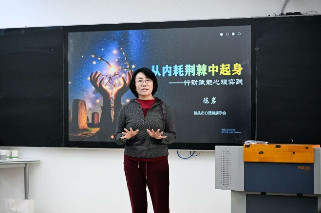 学工办在明德楼H505举办“从内耗荆棘中起身——行动赋能心理实践”主题讲座暨团体辅导活动,学院学工办主任张茜主持此次活动,邀请国内知名心理专家陈岩老师主讲,赵思翔、李晨阳老师辅讲。