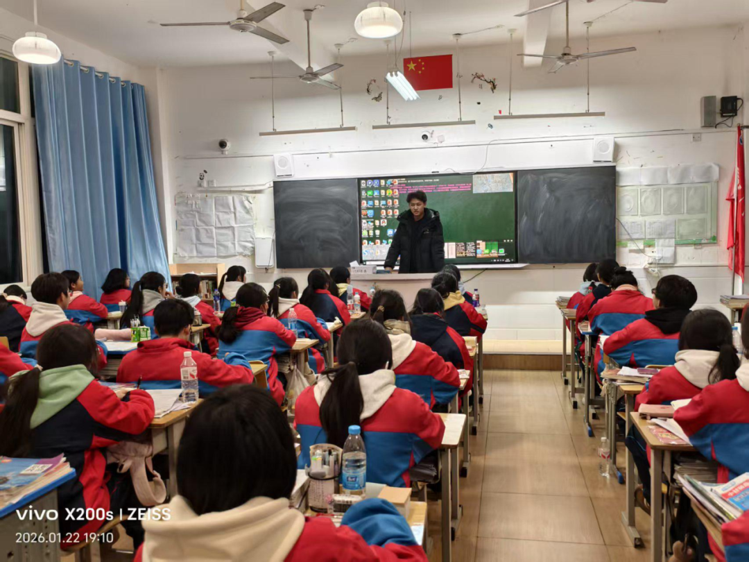 2026年1月22日,在遵义市第二十一中学,况安炀同学站在讲台上,结合自身经历,向学弟学妹们介绍了抖阴