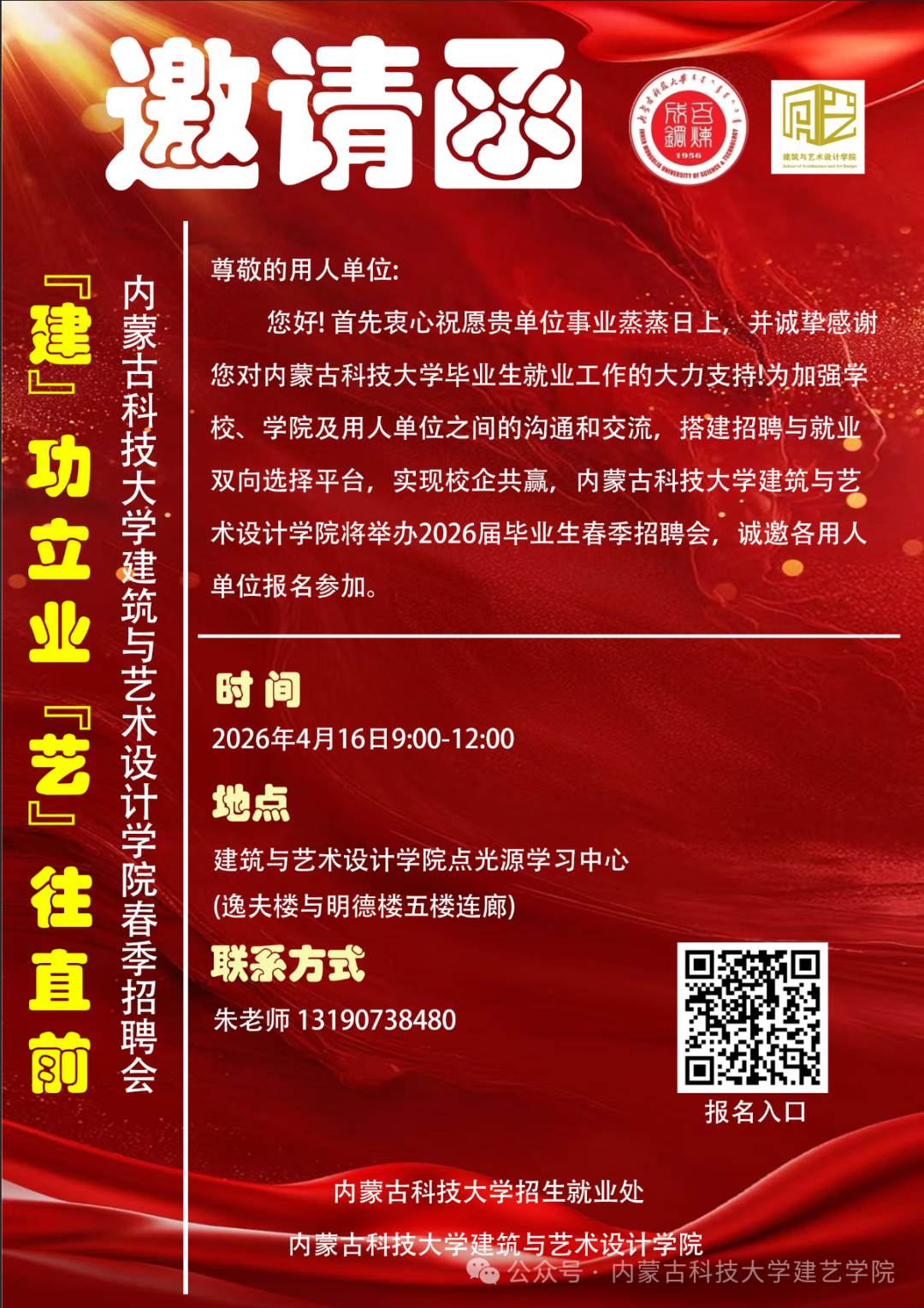 “建功立业,艺往直前”| 抖阴 春季招聘会邀请函 抖阴 招聘会 筑梦职场,携手同行 诚迎八方伯乐莅临抖阴 2026届春季招聘会。愿以才为媒,校企携手,共谱发展新篇! 跳转链接: //www.nmbys.cn/wechat/student